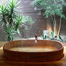 プライベートな温泉をお楽しみいただけるよう、貸切家族風呂を12室ご用意しております。他のお客様に気兼ねすることなく入浴できますので、家族水入らずで入るも良し、親しい友人やカップルでご利用になるも良し。“自分たちだけ”の温泉をお楽しみください。 お部屋は全部で12種類。「ひのき風呂」や「岩風呂」等をご用意いたしました。